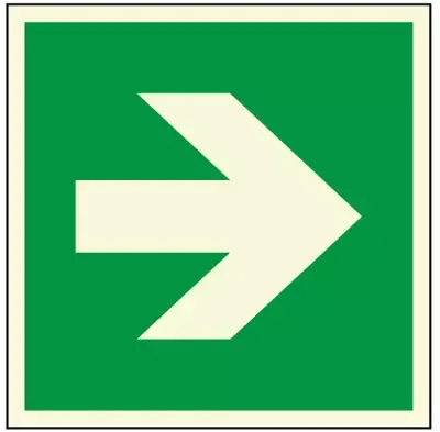 Emergency Exit Symbol of straight arrow using photoluminescent, glow-in-the-dark ink on aluminum.