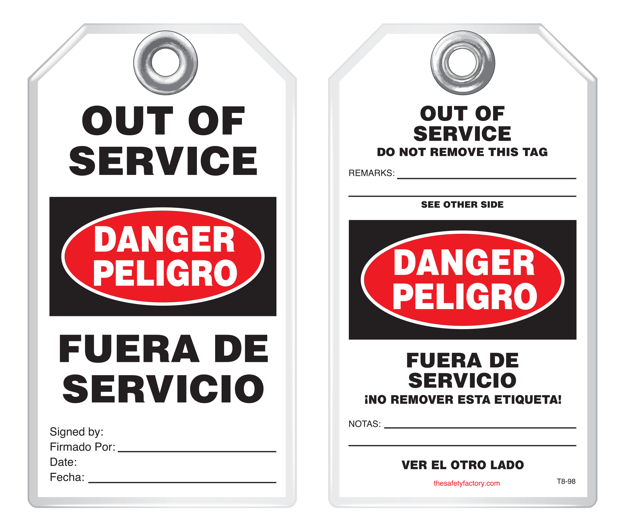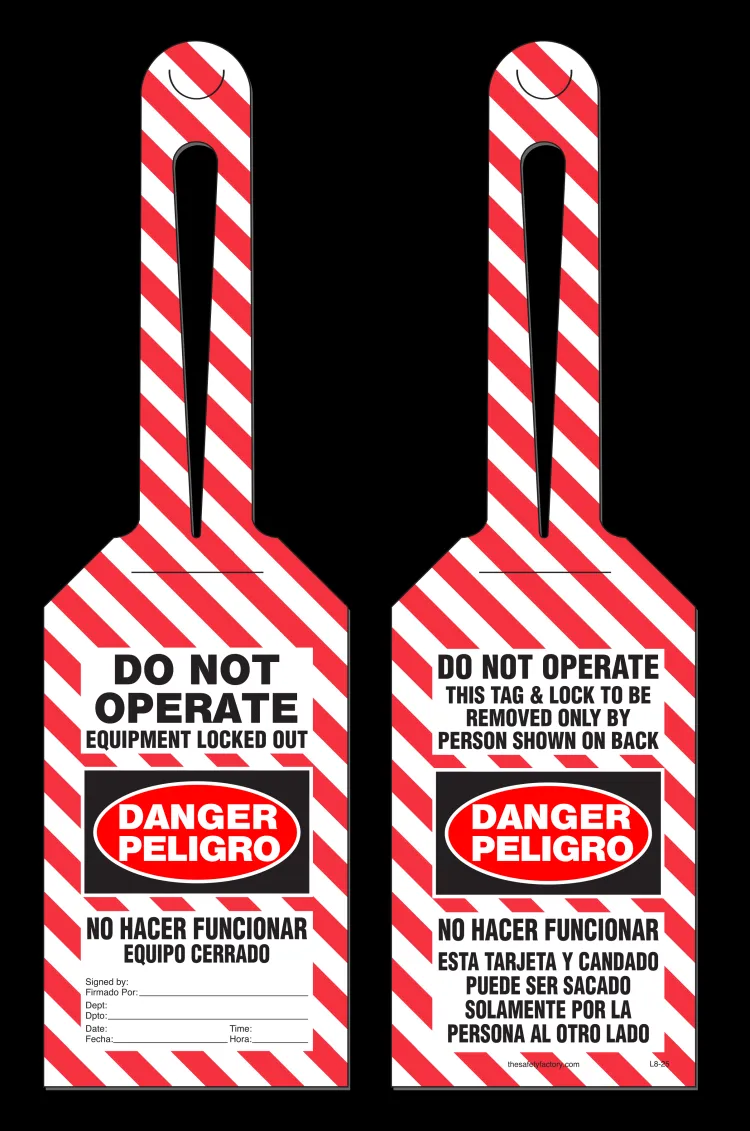 This bilingual, Spanish-English Loop tag alerts employees not to use specific equipment.