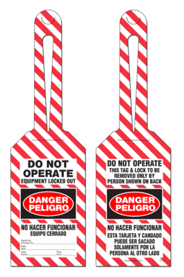 Bilingual Loop Tag - Danger, Peligro, Do Not Operate, Equipment Locked Out By, No Hacer Funcionar (English/Spanish) (10/Pack)