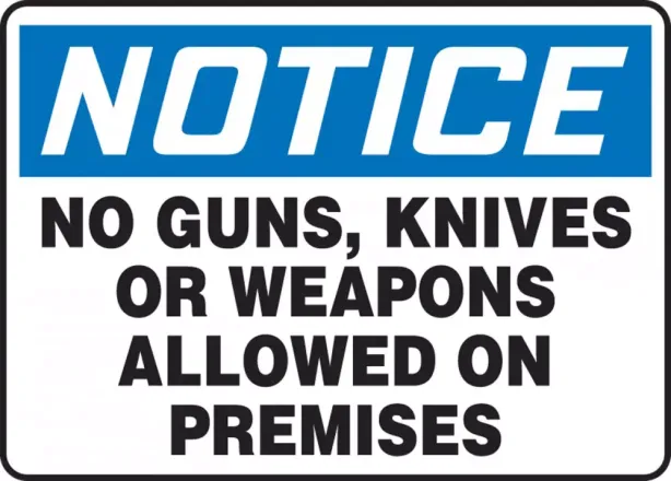 When launching a business, you want to make sure your customers know you take their safety and security seriously. Especially after the past few year's Pulse Nightclub shooting, London Bridge violence and San Bernadino workplace bloodshed, the increase of violence has people on edge. When walking onto my daughter's school campus, I now take note of signs indicating I need to sign in at the office, and I sleep more soundly knowing safety procedures are in place. Just last weekend, my family and I visited the US National Whitewater Center, and our visit was smooth, should I even dare to say - it flowed well (pun intended) because of the signage. We knew where to go, that weapons of any kind were not allowed (and they checked bags too), but unlike our recent theatre experience, cameras and cell phones were permitted, even encouraged if they were waterproof!