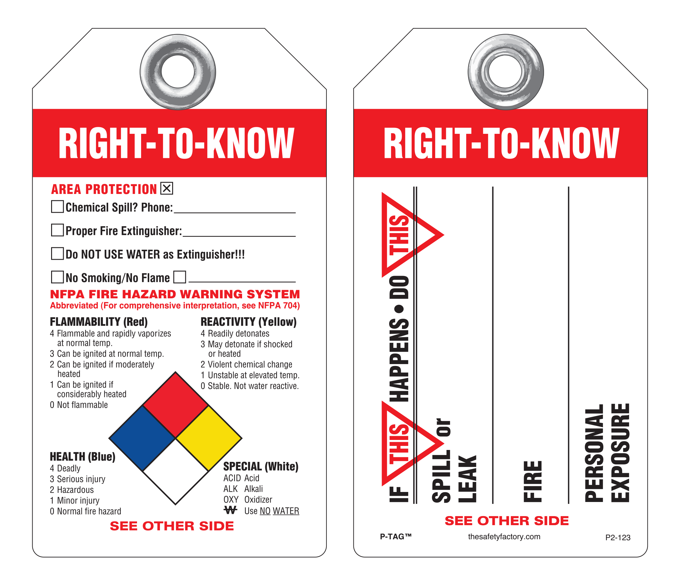 These self-laminating P/S lockout, safety and operational tags allow you to write specific instructions in pen, pencil or marker. Then simply press down a pressure-sensitive laminating film which protects the tag from moisture, dirt, grease and chemicals. No equipment is needed to laminate these tags. Each tag has a pull strength that exceeds the OSHA-required 50 lbs. Printing is on rigid plastic and a 2 mil polyester lamination on either one or two sides.