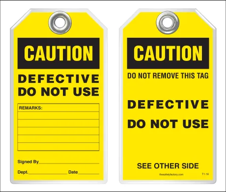 The Safety Factory's Classic Industrial safety tags are uniquely durable and strong and they are the most popular lockout safety tag for thousands of industrial companies around the world! They hold up against moisture, dirt, grease, chemicals and extreme temperatures. Each tag has a 3/8 hole reinforced with a metal grommet and has a pull strength that exceeds the 50 lb pull strength established by OSHA's Lockout/Tagout standard (OSHA 1910.147). Printing is UV protected and encapsulated inside rigid PVC. This rugged material has a durable, hard-matte finish which retains pen, pencil and marker notations and pencil may be erased for multiple use.