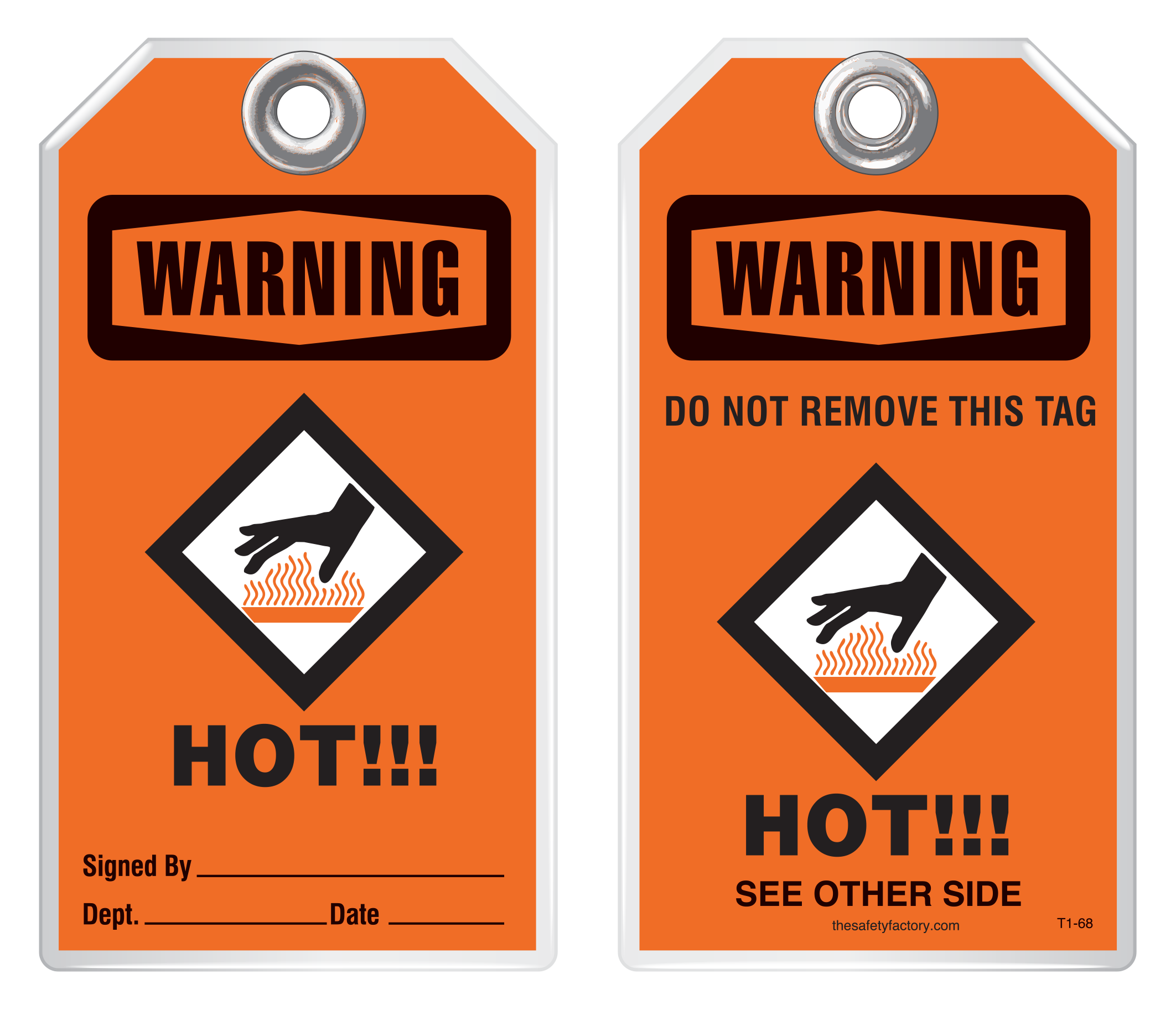 The Safety Factory's Classic Industrial safety tags are uniquely durable and strong and they are the most popular lockout safety tag for thousands of industrial companies around the world! They hold up against moisture, dirt, grease, chemicals and extreme temperatures. Each tag has a 3/8 hole reinforced with a metal grommet and has a pull strength that exceeds the 50 lb pull strength established by OSHA's Lockout/Tagout standard (OSHA 1910.147). Printing is UV protected and encapsulated inside rigid PVC. This rugged material has a durable, hard-matte finish which retains pen, pencil and marker notations and pencil may be erased for multiple use.