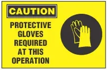 Legend:CAUTION, PROTECTIVE GLOVES REQUIRED AT THIS OPERATION (With Symbol, Yellow Background)