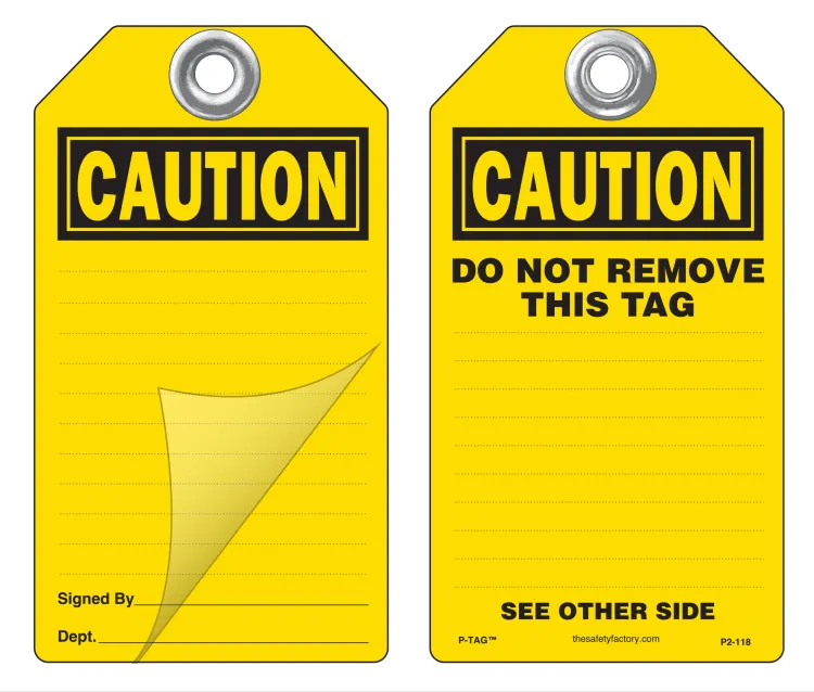 Caution Self-Laminating Peel and Stick Safety Tag