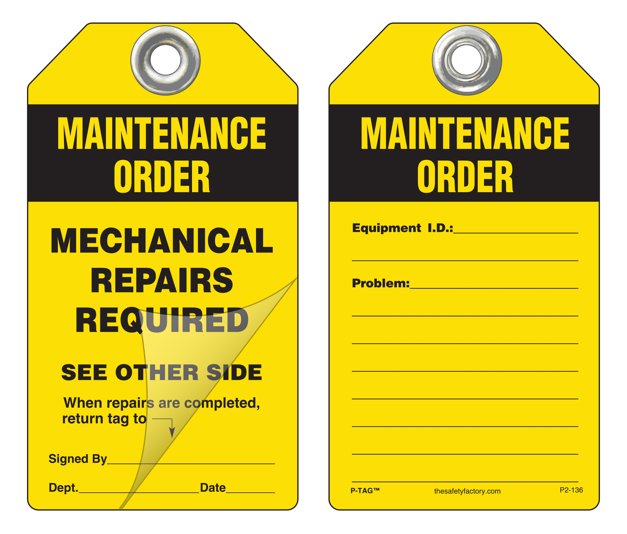 These self-laminating P/S lockout, safety and operational tags allow you to write specific instructions in pen, pencil or marker. Then simply press down a pressure-sensitive laminating film which protects the tag from moisture, dirt, grease and chemicals. No equipment is needed to laminate these tags. Each tag has a pull strength that exceeds the OSHA-required 50 lbs. Printing is on rigid plastic and a 2 mil polyester lamination on either one or two sides.