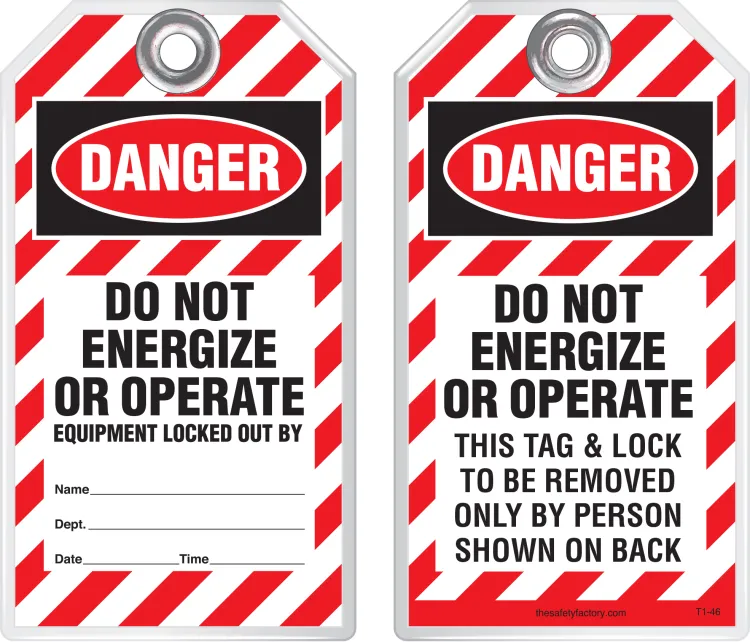The Safety Factory's Classic Industrial safety tags are uniquely durable and strong and they are the most popular lockout safety tag for thousands of industrial companies around the world! They hold up against moisture, dirt, grease, chemicals and extreme temperatures. Each tag has a 3/8 hole reinforced with a metal grommet and has a pull strength that exceeds the 50 lb pull strength established by OSHA's Lockout/Tagout standard (OSHA 1910.147). Printing is UV protected and encapsulated inside rigid PVC. This rugged material has a durable, hard-matte finish which retains pen, pencil and marker notations and pencil may be erased for multiple use.