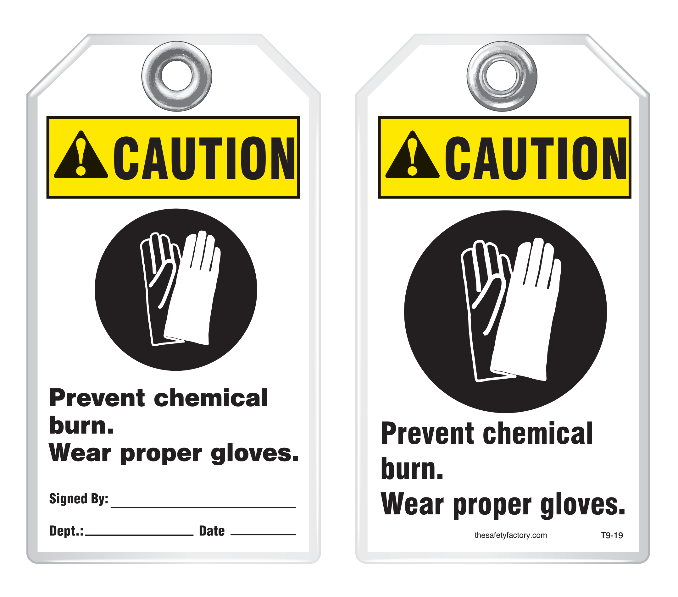 The Safety Factory's Classic Industrial safety tags are uniquely durable and strong and they are the most popular lockout safety tag for thousands of industrial companies around the world! They hold up against moisture, dirt, grease, chemicals and extreme temperatures. Each tag has a 3/8 hole reinforced with a metal grommet and has a pull strength that exceeds the 50 lb pull strength established by OSHA's Lockout/Tagout standard (OSHA 1910.147). Printing is UV protected and encapsulated inside rigid PVC. This rugged material has a durable, hard-matte finish which retains pen, pencil and marker notations and pencil may be erased for multiple use.