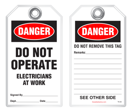The Safety Factory's Classic Industrial safety tags are uniquely durable and strong and they are the most popular lockout safety tag for thousands of industrial companies around the world! They hold up against moisture, dirt, grease, chemicals and extreme temperatures. Each tag has a 3/8 hole reinforced with a metal grommet and has a pull strength that exceeds the 50 lb pull strength established by OSHA's Lockout/Tagout standard (OSHA 1910.147). Printing is UV protected and encapsulated inside rigid PVC. This rugged material has a durable, hard-matte finish which retains pen, pencil and marker notations and pencil may be erased for multiple use.