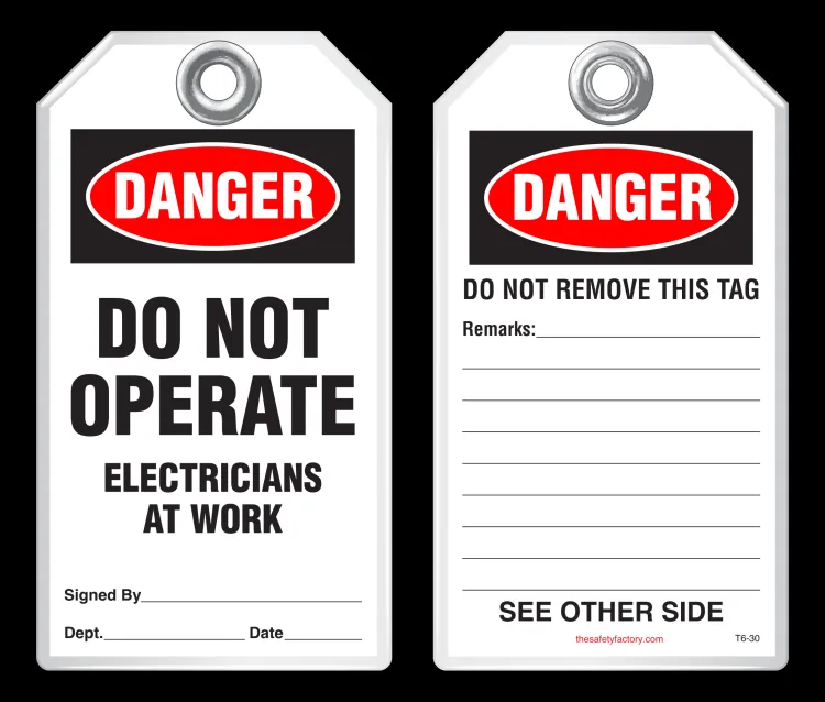 Safety tags come in standard size 3-1/8 x 5-5/8 and are also available in custom sizes and custom designs - add your company's logo, or customize your tags with special wording. Safety tags are also available in 2 alternative, economical materials shown below.