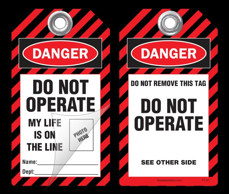 These Real-Life® self-laminating P/S lockout tags allow you to attach a photograph of the specific person responsible for the lockout. These self-laminated lockout, safety and operational tags also allow you to write specific instructions in pen, pencil or marker. Then simply press down a pressure-sensitive laminating film which protects the tag from moisture, dirt, grease and chemicals. No equipment is needed to laminate these tags. Each tag has a pull strength that exceeds the OSHA-required 50 lbs. Printing is on rigid plastic and a 2 mil polyester lamination on either one or two sides.