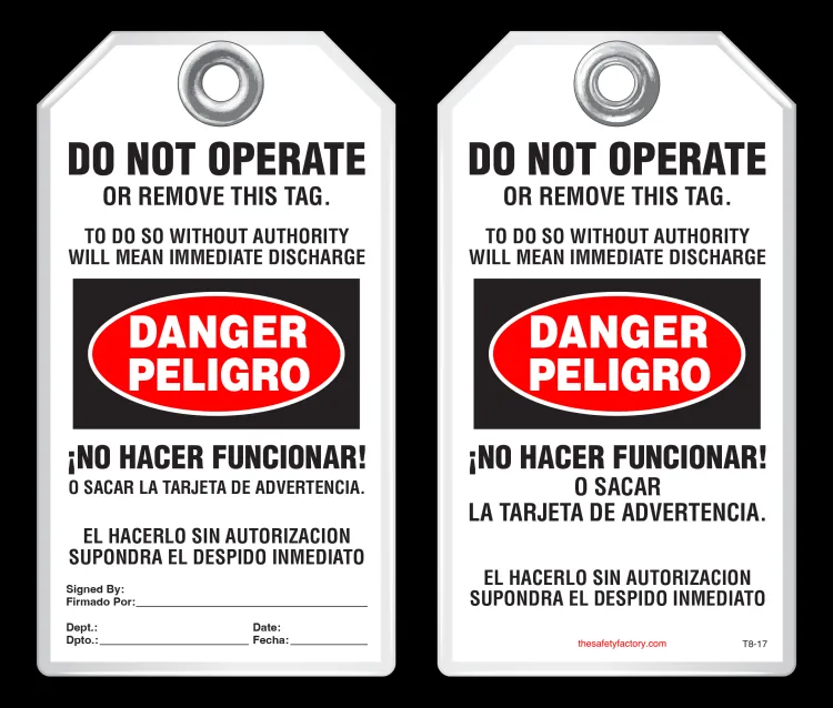 | Legend: | DANGER, PELIGRO, DO NOT OPERATE OR REMOVE THIS TAG, NO HACER FUNCIONAR (English/Spanish) |
