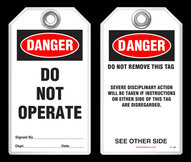 The Safety Factory's Classic Industrial safety tags are uniquely durable and strong and they are the most popular lockout safety tag for thousands of industrial companies around the world! They hold up against moisture, dirt, grease, chemicals and extreme temperatures. Each tag has a 3/8 hole reinforced with a metal grommet and has a pull strength that exceeds the 50 lb pull strength established by OSHA's Lockout/Tagout standard (OSHA 1910.147). Printing is UV protected and encapsulated inside rigid PVC. This rugged material has a durable, hard-matte finish which retains pen, pencil and marker notations and pencil may be erased for multiple use.