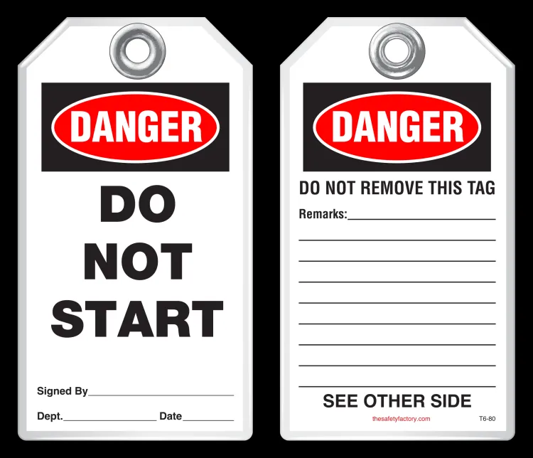 Safety tags come in standard size 3-1/8 x 5-5/8 and are also available in custom sizes and custom designs - add your company's logo, or customize your tags with special wording. Safety tags are also available in 2 alternative, economical materials shown below.