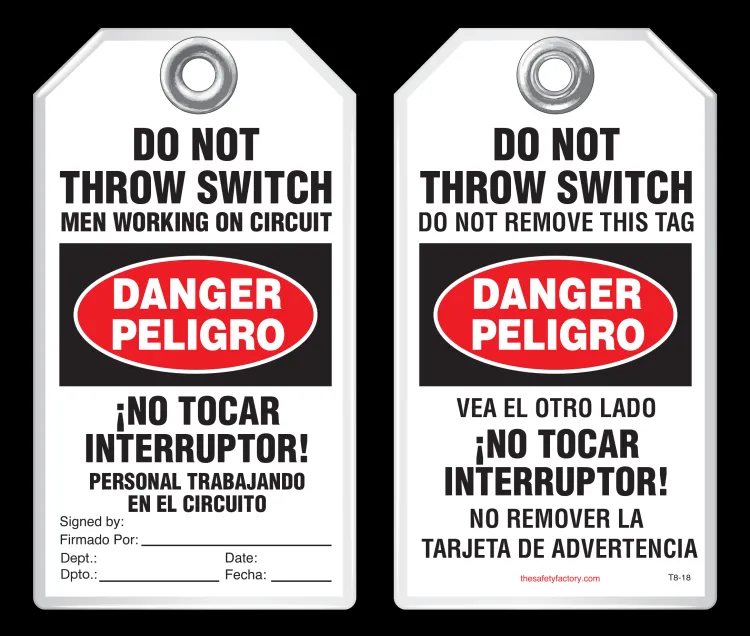 | Legend: | DANGER, PELIGRO, DO NOT THROW SWITCH, MEN WORKING ON CIRCUIT, NO TOCAR INTERRUPTOR! (English/Spanish) |