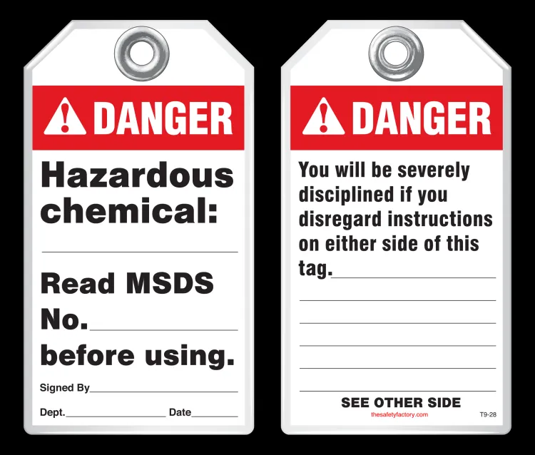 The Safety Factory's Classic Industrial safety tags are uniquely durable and strong and they are the most popular lockout safety tag for thousands of industrial companies around the world! They hold up against moisture, dirt, grease, chemicals and extreme temperatures. Each tag has a 3/8 hole reinforced with a metal grommet and has a pull strength that exceeds the 50 lb pull strength established by OSHA's Lockout/Tagout standard (OSHA 1910.147). Printing is UV protected and encapsulated inside rigid PVC. This rugged material has a durable, hard-matte finish which retains pen, pencil and marker notations and pencil may be erased for multiple use.