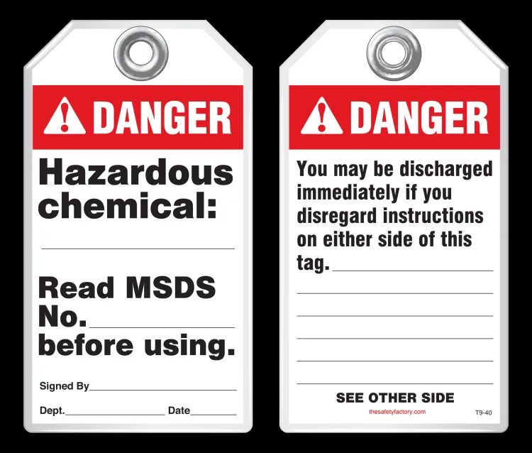 The Safety Factory's Classic Industrial safety tags are uniquely durable and strong and they are the most popular lockout safety tag for thousands of industrial companies around the world! They hold up against moisture, dirt, grease, chemicals and extreme temperatures. Each tag has a 3/8 hole reinforced with a metal grommet and has a pull strength that exceeds the 50 lb pull strength established by OSHA's Lockout/Tagout standard (OSHA 1910.147). Printing is UV protected and encapsulated inside rigid PVC. This rugged material has a durable, hard-matte finish which retains pen, pencil and marker notations and pencil may be erased for multiple use.