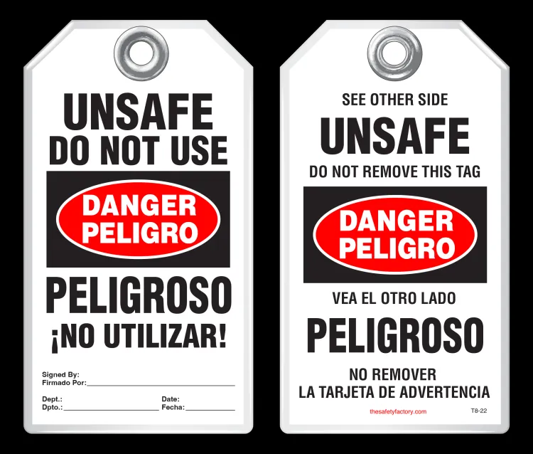 Safety tags come in standard size 3-1/8 x 5-5/8 and are also available in custom sizes and custom designs - add your company's logo, or customize your tags with special wording. Safety tags are also available in 2 alternative, economical materials shown below.