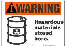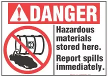 Legend:DANGER, HAZARDOUS MATERIALS STORED HERE. REPORT SPILLS IMMEDIATELY (With Symbol)