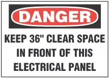 Legend:DANGER, KEEP 36" CLEAR SPACE IN FRONT OF THIS ELECTRICAL PANEL