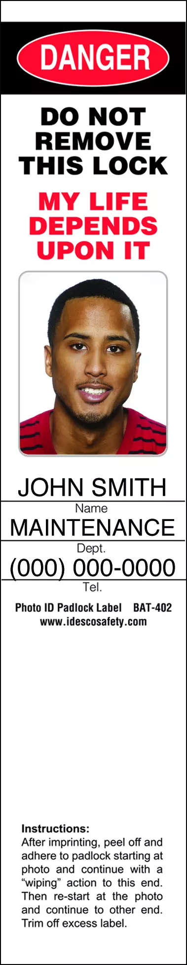 Use The Safety Factory's new DIY Photo ID Safety Tags and Padlock Labels when you want to put a photo of the person responsible for the lockout directly onto the equipment being locked out. All you need is a camera (smart phone cameras are perfect!) and a color printer!