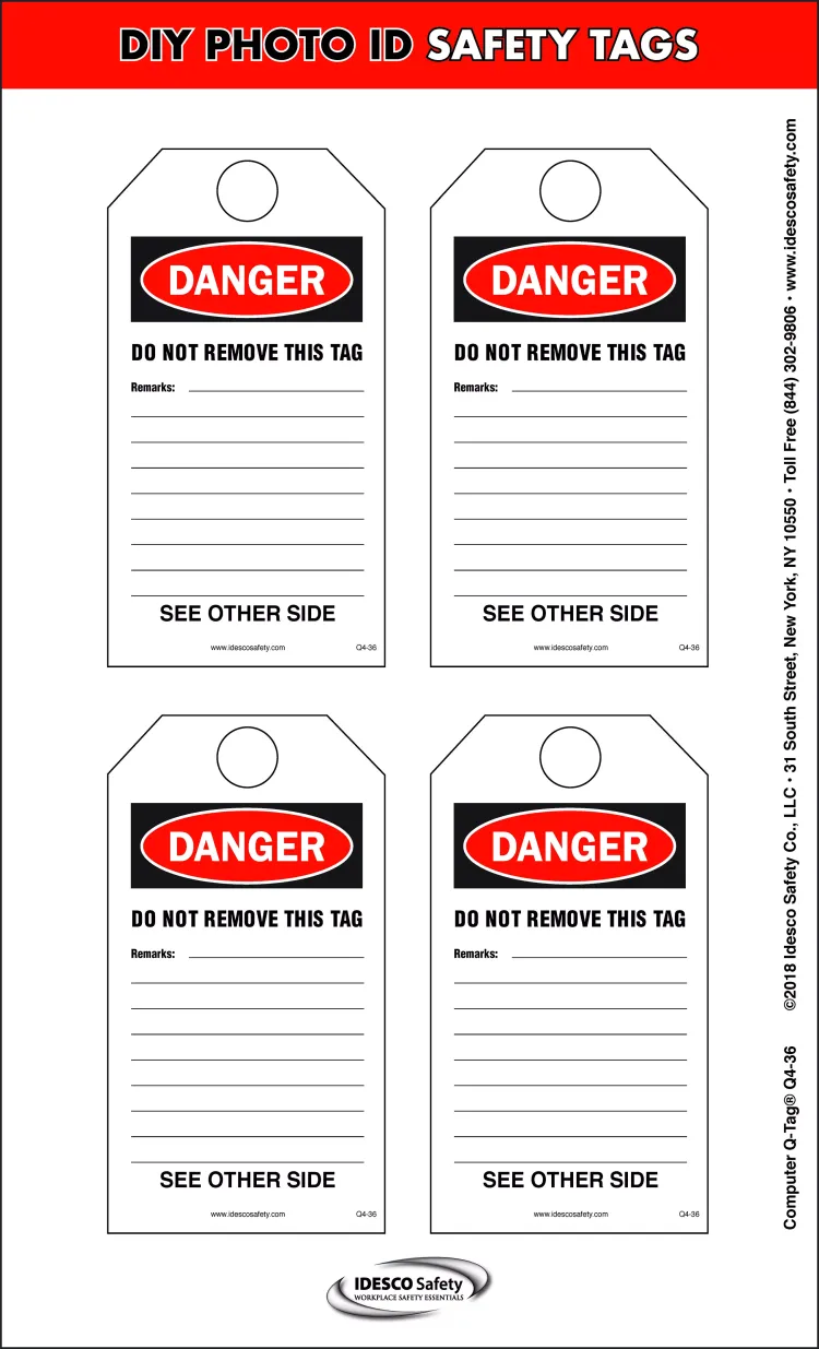 | Quantity in Pack: | 20 safety tags (4 safety tags per sheet, 5 sheets per pack) |