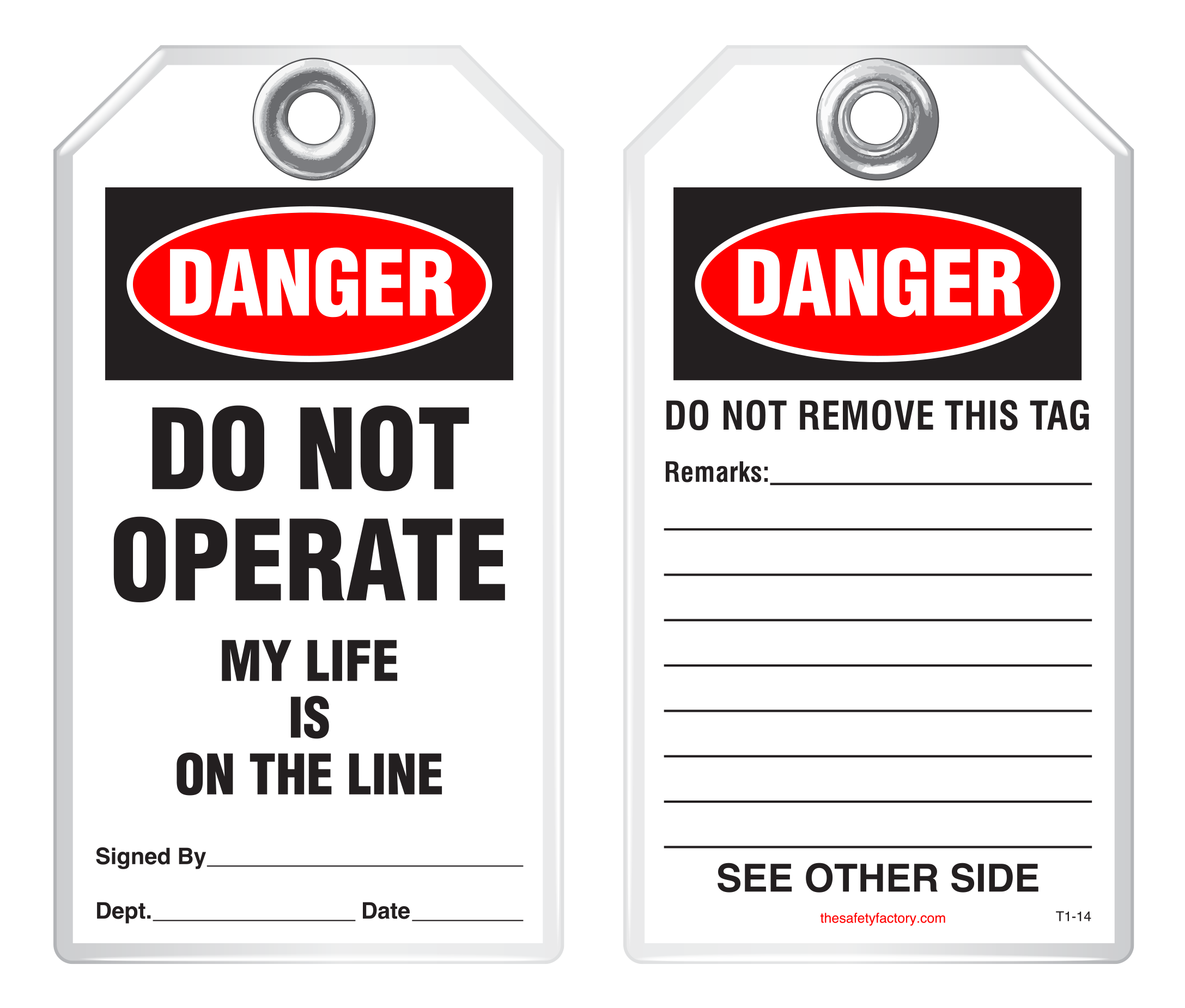 Lockout Safety Tag - Danger, Do Not Operate, My Life Is On The Line T1-48
