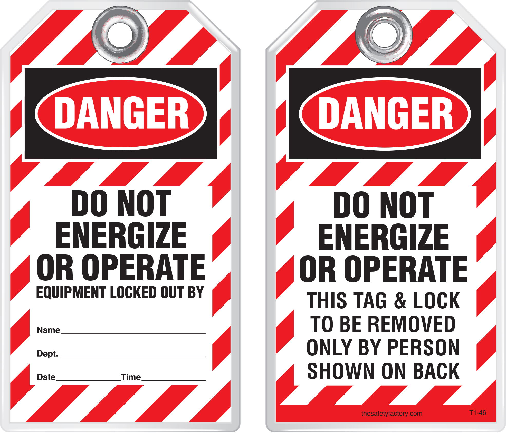 Lockout Safety Tag - Danger, Do Not Energize Or Operate, Equipment Locked Out By T1-46