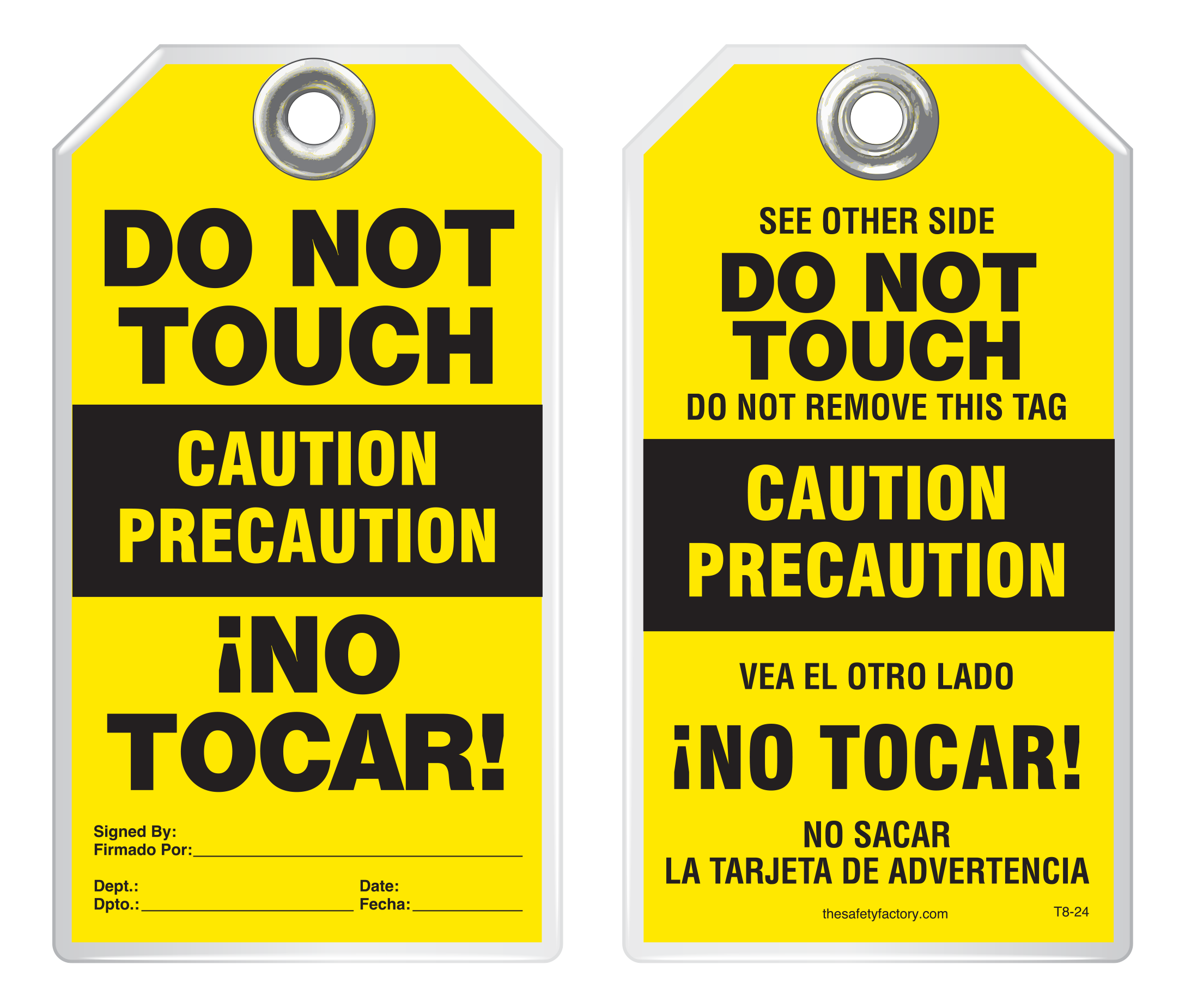 Bilingual Safety Tag - Caution, Precaucion, Do Not Touch, No Tocar! (English/Spanish) T8-24