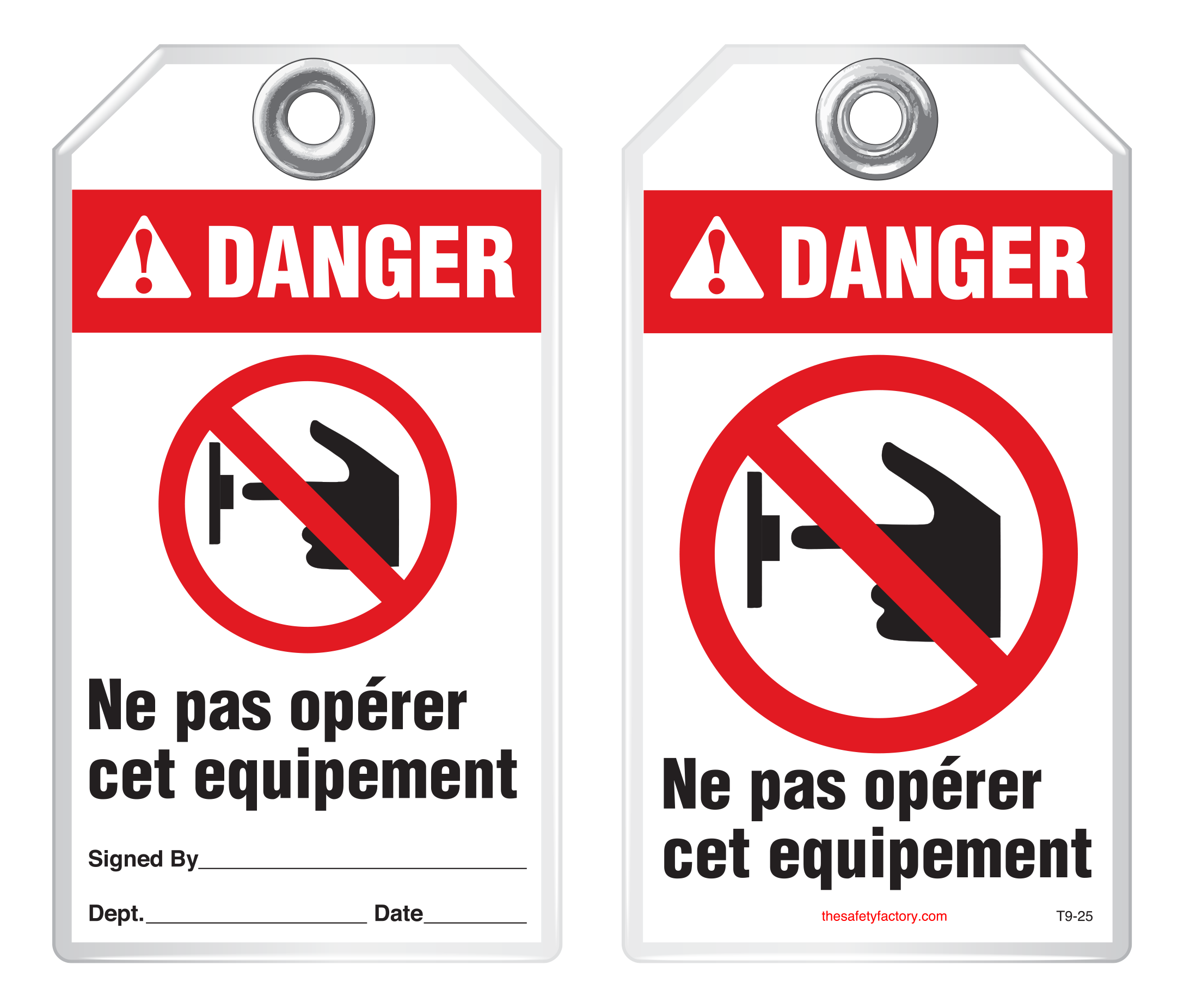 Bilingual Safety Tag - Danger, Ne Pas Operer Cet Equipement  (Ansi - French) T9-25