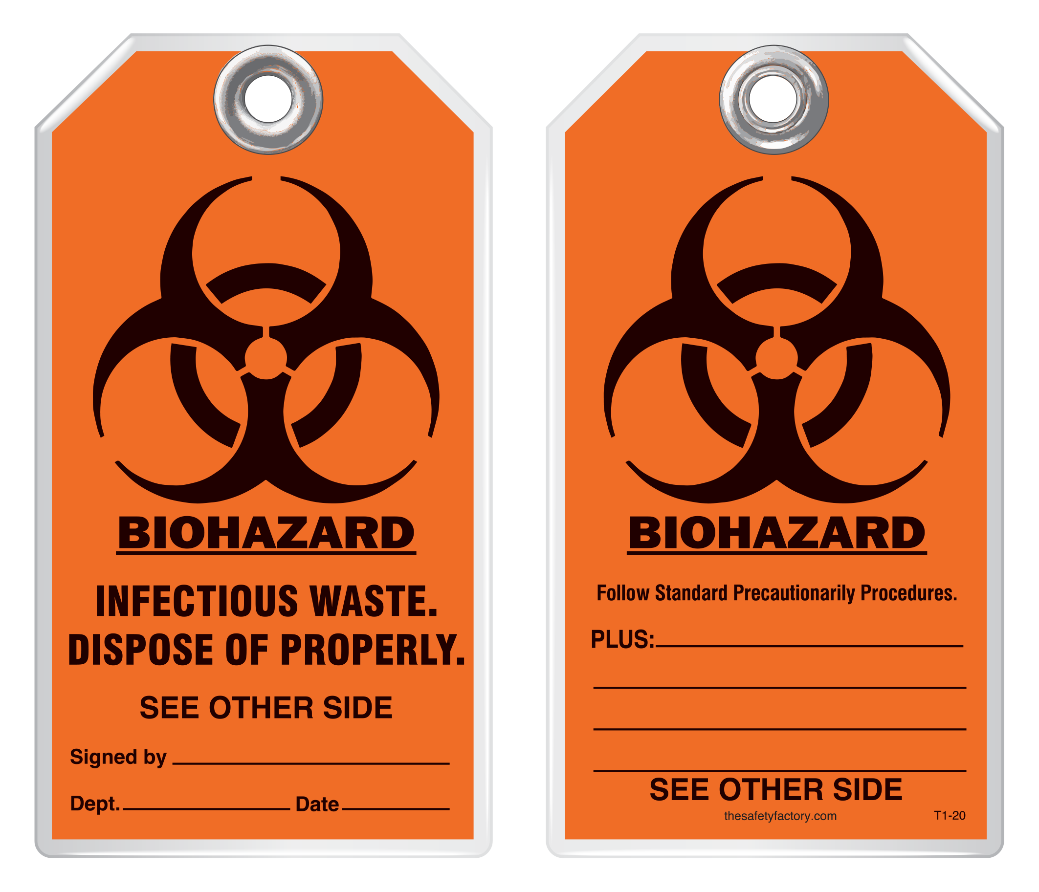 Safety Tag - Biohazard, Infectious Waste, Dispose Of Properly T1-20