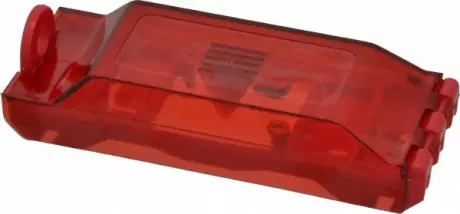 Locks out both toggle and Decora"! switches. Patented design ensures switch stays locked on or off and hinges open for unobstructed normal operations of switch.