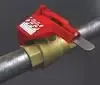 Prevents valves from turning on utilizing gull-wing design lockout.