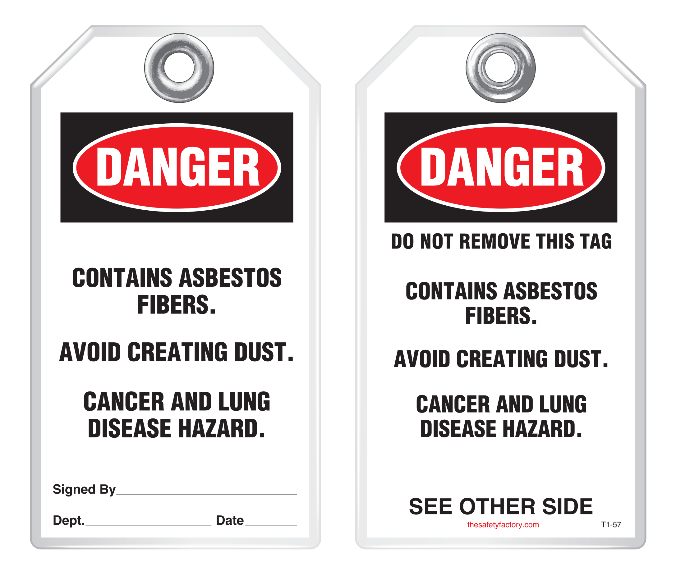 Safety Tag - Danger, Contains Asbestos Fibers, Avoid Creating Dust