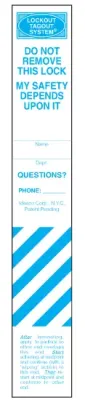 These LockWrap® labels have a peel-off, pressure sensitive backing and a polyester over-laminate. Each label comes with a clear shrink-to-fit heavy duty sleeve which makes the label durable for the life of the padlock. Use Idesco brand laminator and Industrial Heat Gun to apply.