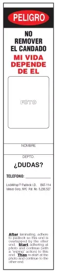 Lockwrap® Padlock Label and Small Sleeve (Spanish) - Peligro No Remover El Candado