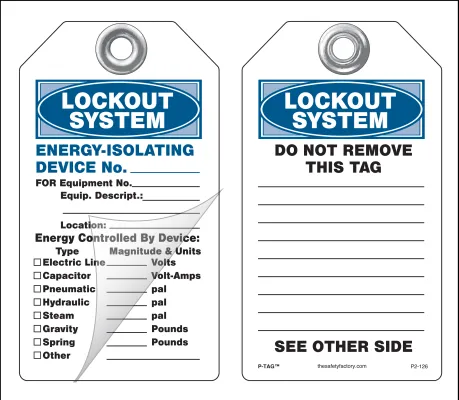 Lockout System Energy Isolating Device Self-Laminating Peel and Stick Safety Tag