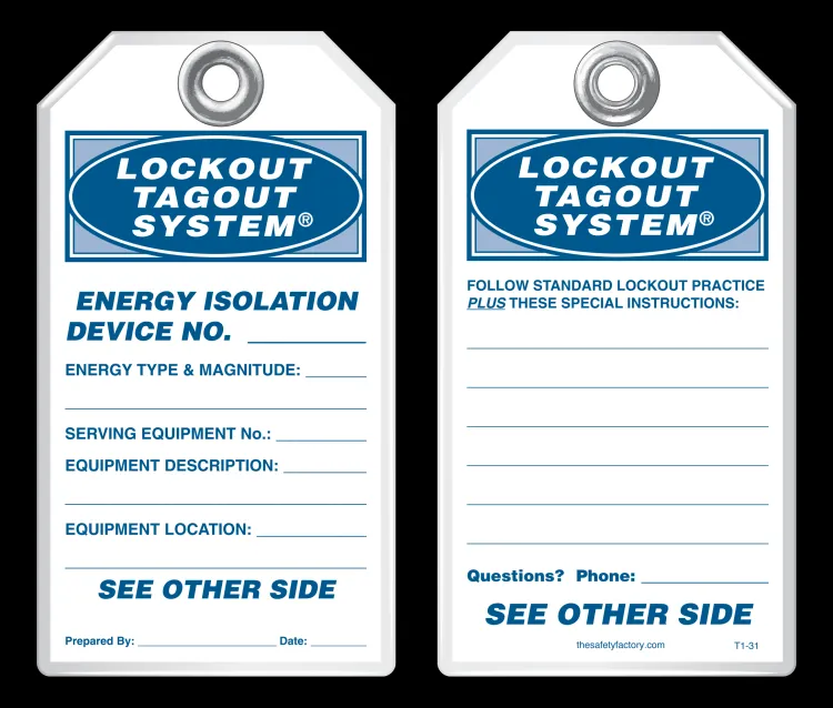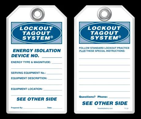 The Safety Factory's Classic Industrial safety tags are uniquely durable and strong and they are the most popular lockout safety tag for thousands of industrial companies around the world! They hold up against moisture, dirt, grease, chemicals and extreme temperatures. Each tag has a 3/8 hole reinforced with a metal grommet and has a pull strength that exceeds the 50 lb pull strength established by OSHA's Lockout/Tagout standard (OSHA 1910.147). Printing is UV protected and encapsulated inside rigid PVC. This rugged material has a durable, hard-matte finish which retains pen, pencil and marker notations and pencil may be erased for multiple use.