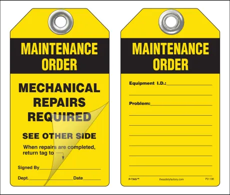 Maintenance Order, Mechanical Repairs Required Self-Laminating Peel and Stick Safety Tag