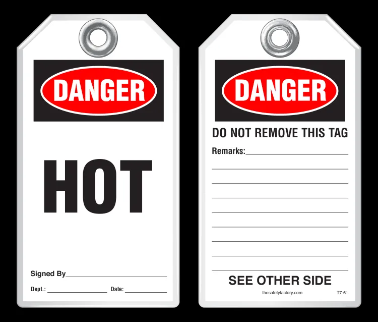Safety tags come in standard size 3-1/8 x 5-5/8 and are also available in custom sizes and custom designs - add your company's logo, or customize your tags with special wording. Safety tags are also available in 2 alternative, economical materials shown below.