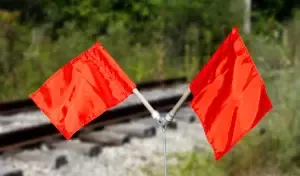 The red flag indicates that the train should stop immediately.