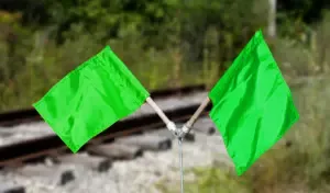 The green flag indicates that it is clear for a train to proceed.