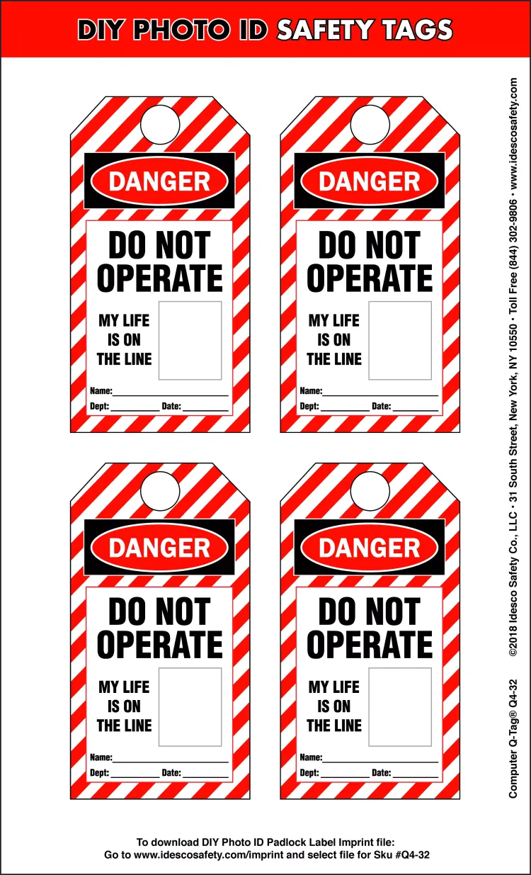 Use our DIY Photo ID Safety Tags to put a photo of the person responsible for the lockout directly onto the equipment being locked out. All you need is a camera (smart phone cameras are fine!) and an office printer (inkjet or laser). Make sure your lockouts are easy to identify!