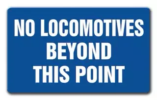 No Locomotives Beyond This Point Blue Sign