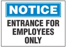 Legend:NOTICE, ENTRANCE FOR EMPLOYEES ONLY