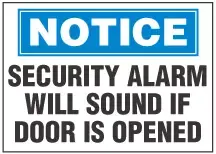 Notice Sign, Security Alarm Will Sound If Door Is Opened