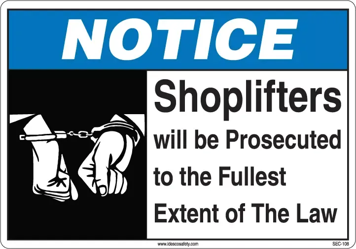 Notice Shoplifters Will Be Prosecuted To The Fullest Extent Of The Law