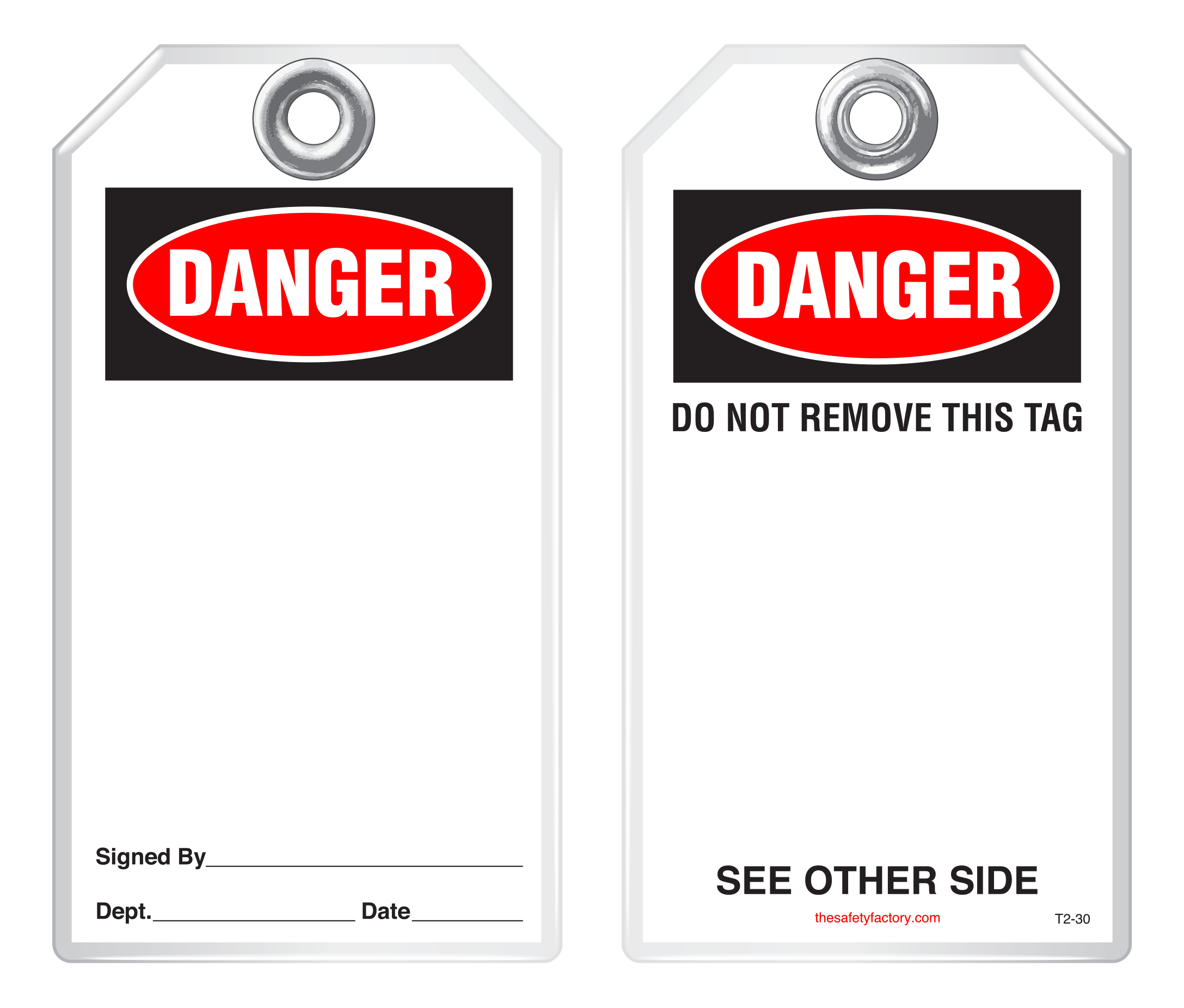 Safety tags come in standard size 3-1/8 x 5-5/8 and are also available in custom sizes and custom designs - add your company's logo, or customize your tags with special wording. Safety tags are also available in 2 alternative, economical materials shown below.