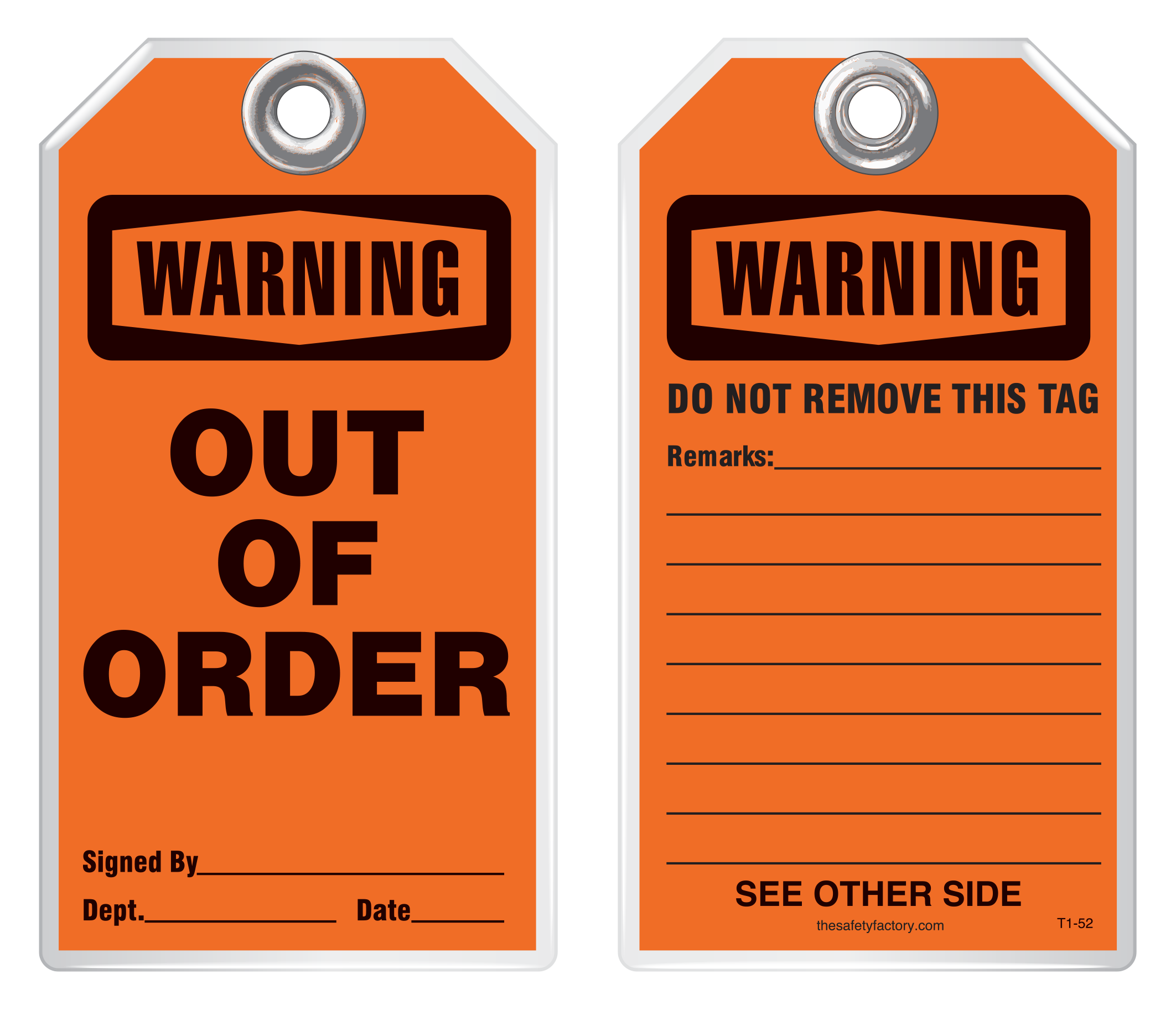 Maintenance Safety Tag - Warning, Out Of Order T1-52