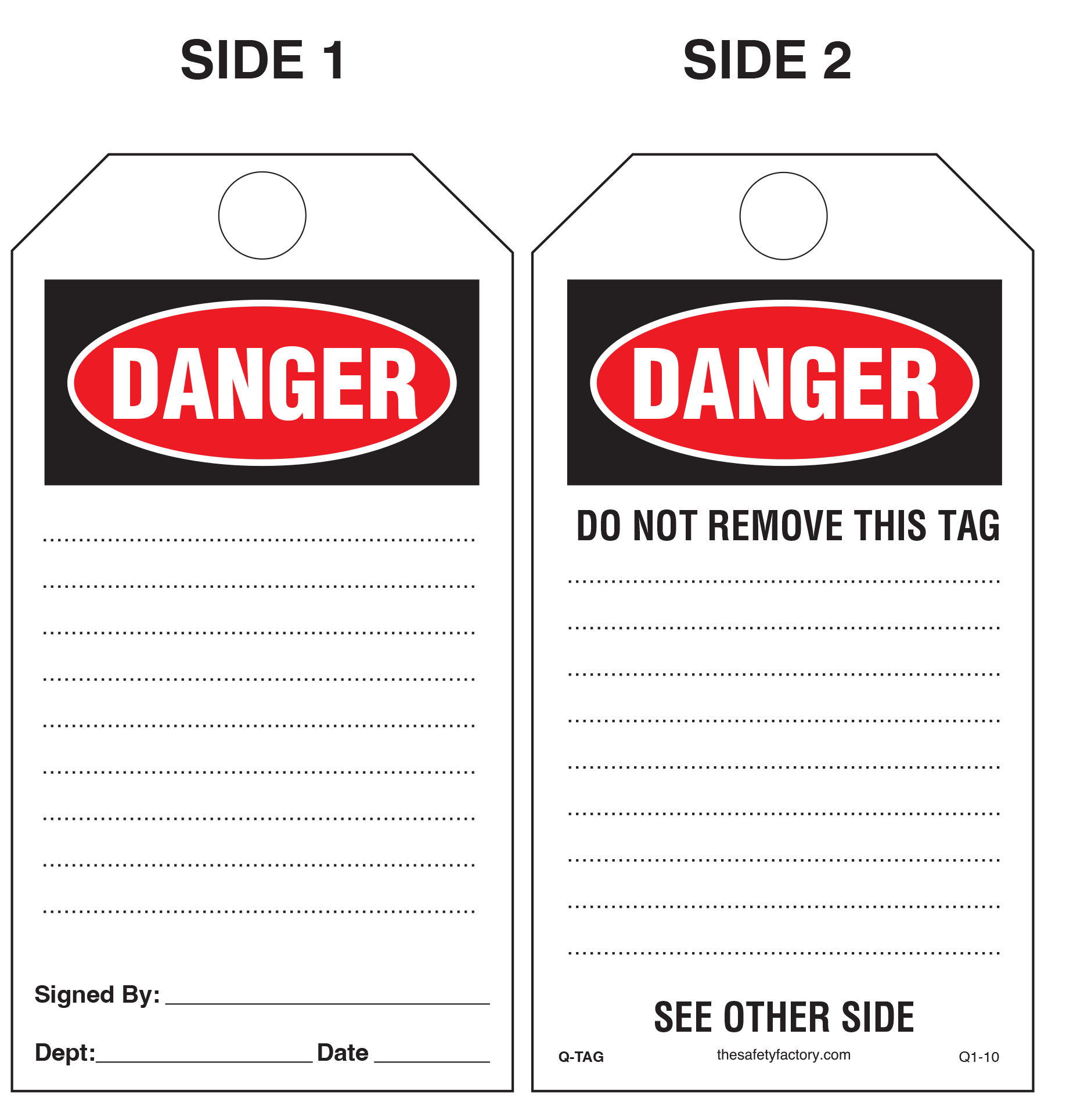 Danger Paper Safety Tag Q1-10E